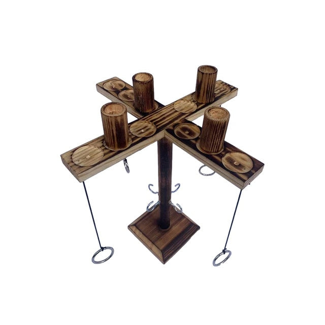 An interactive wooden ring toss game is a classic carnival-style game that is perfect for parties, barbeques, and other social gatherings. It consists of a wooden board with several pegs sticking out of it, and players try to toss rings onto the pegs in order to score points. The game is simple and easy to learn, making it suitable for players of all ages and skill levels. The interactive wooden ring toss game is a great choice for both indoor and outdoor use, as it is durable and can withstand a variety of weather conditions. It is also compact and easy to store, making it a convenient choice for people who are short on space. Whether you're looking to add some excitement to your next outdoor gathering or simply want a fun and interactive way to pass the time, an interactive wooden ring toss game is a great choice.